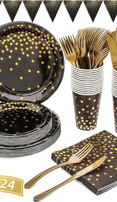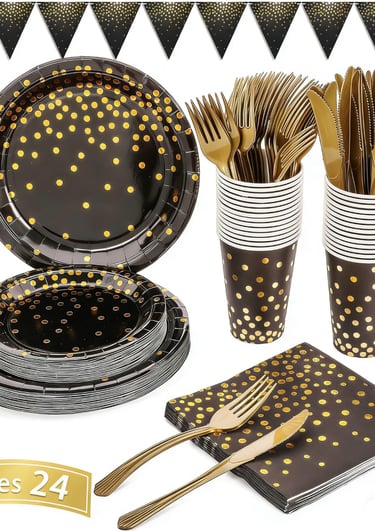 Black and Gold Party Supplies 145PCS Party Dinnerware