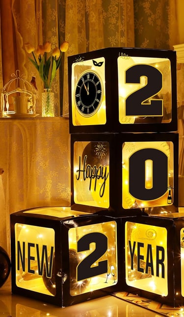 Black and Gold White Balloons 4Pcs Boxes Letters Numbers