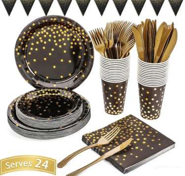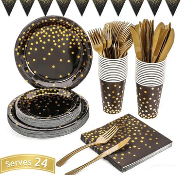 I’m a big believer in stylish convenience. Coordinated disposable plates and cutlery in black, white, and gold look polished, speed up cleanup, and are ideal for larger crowds. Blend them with reusable anchors lanterns, sturdy platters, and cloth napkins to keep the budget grounded while preserving a refined feel.