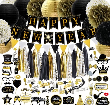 As the new year approaches, thoughtful décor elevates any celebration from routine to memorable. A cohesive palette of black, gold and white accented with metallic tassels, geometric lanterns and tasteful confetti, creates an atmosphere of refined festivity while remaining versatile for both intimate gatherings and larger receptions.