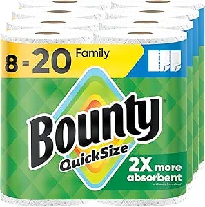 Bounty Quick Size Paper Towels (8 Family Rolls = 20 Regular Rolls)